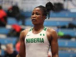 The 28-year-old Nigerian was leading 4-2 on technical points after two minutes 56 seconds in the fight’s first period, but she succumbed to a pinfall to give victory to her opponent.