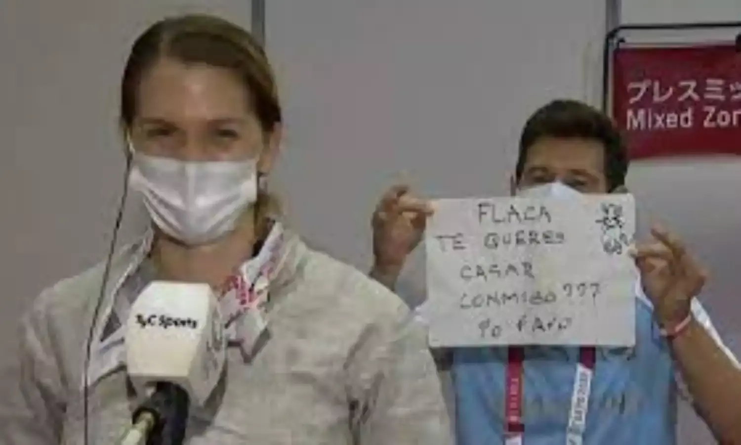 The 36-year-old Perez Maurice was doing a television interview when coach Lucas Guillermo Saucedo appeared behind her with a written note saying “Do you want to marry me?” in Spanish.