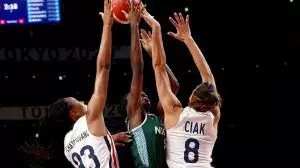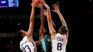 Pic.5. Action during Nigeria versus France game in the Women’s Basketball Group B at the ongoing Tokyo 2020 Olympic Games on Friday (30/7/21).Pic.4. Action during Nigeria versus France game in the Women’s Basketball Group B at the ongoing Tokyo 2020 Olympic Games on Friday (30/7/21).Pic.3. Contest for the ball during the Nigeria versus France game in women’s basketball Group B at the ongoing Tokyo 2020 Olympic Games in Japan on Friday (30/7/21).